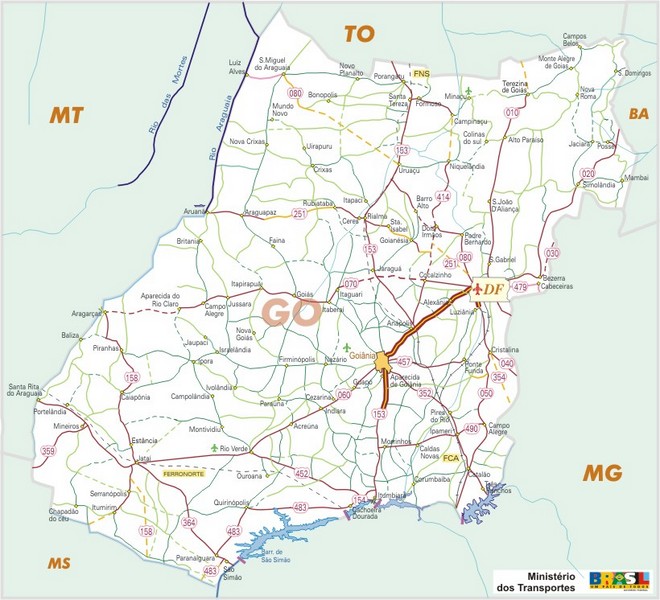 El mapa de carreteras del estado de Goiás comunican a la perfección la capital, Goiâna, con el resto del territorio. Por ejemplo, la vía BR-060 -que se encuentra en perfectas condiciones- une esta ciudad con la capital del país, Brasilia. O también se puede recorrer la BR-153, que comunica una gran cantidad de pueblos de esta zona de Brasil.